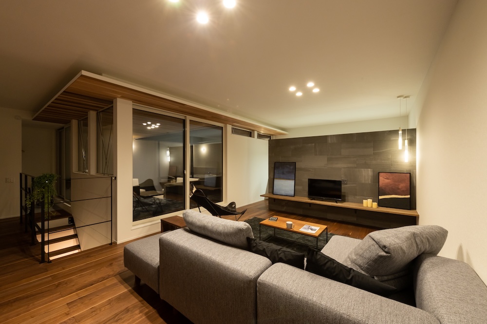 2階リビングは、家族もゲストもくつろげる空間設計。