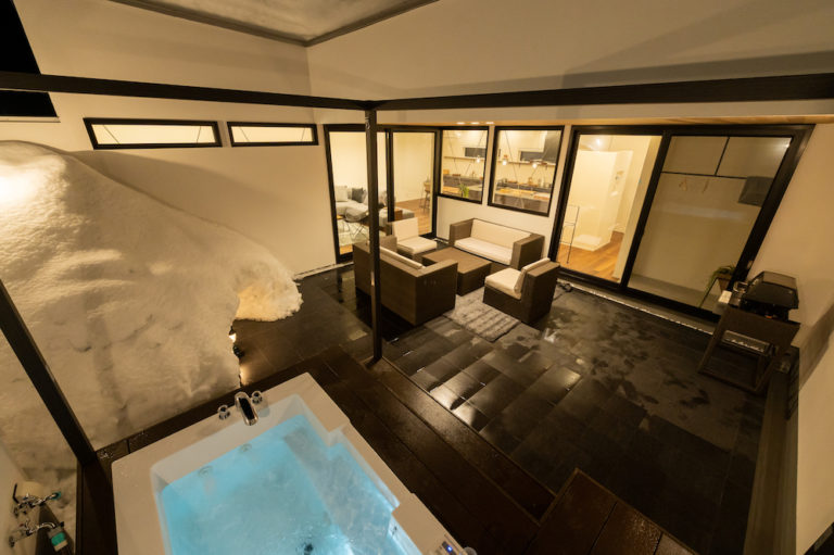 そのキッチンの向こうには、アウトドアリビングとジャグジー付き浴槽。